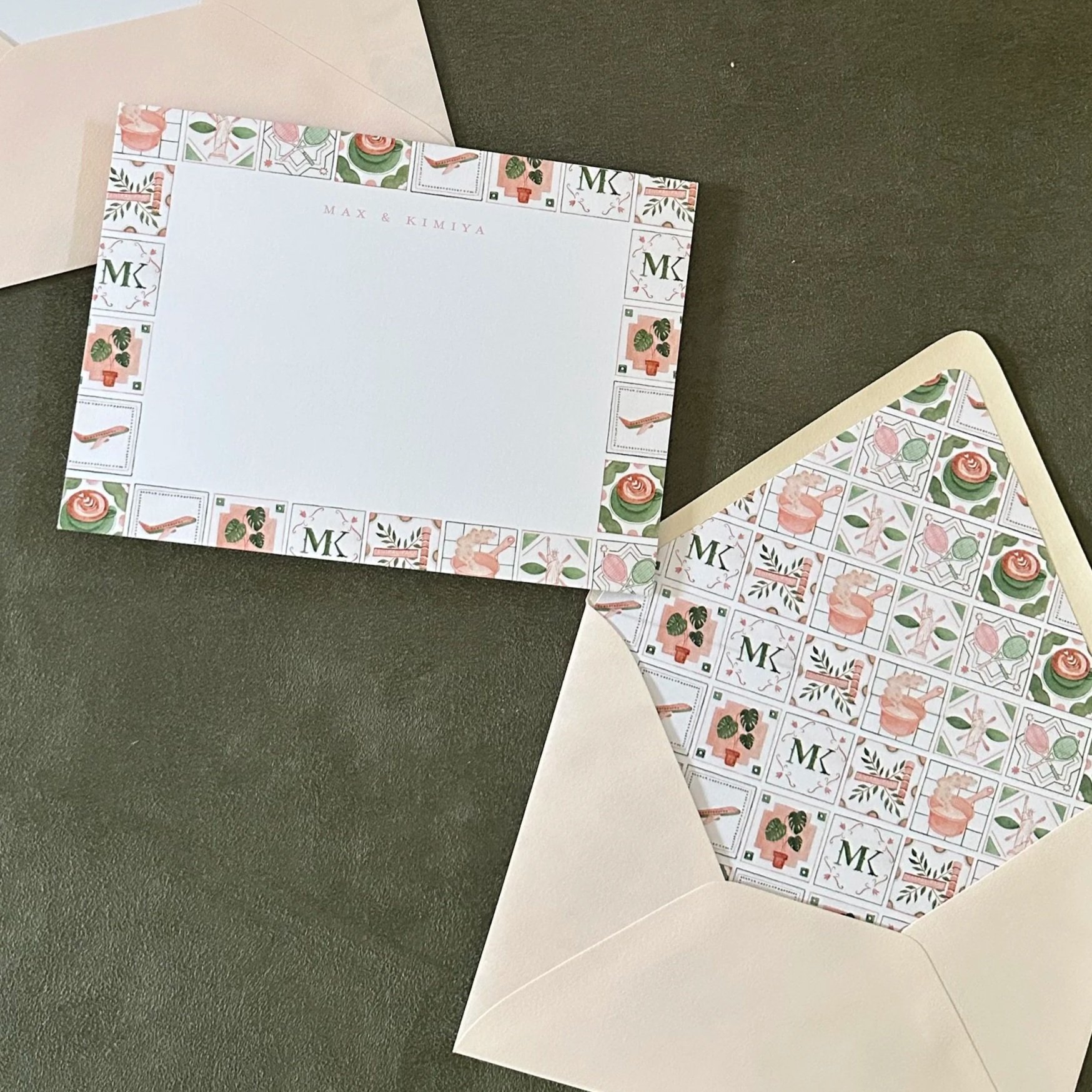 I also offer luxury stationery sets with custom artwork of your favorite things - whether that be your pet, your home, your favorite purse, or something else! Just a few examples below: